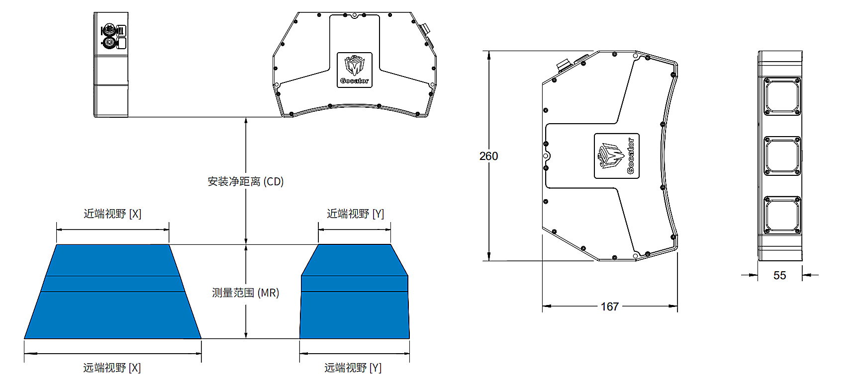 传感器的视野更大且安装净距离更短,使用户能够小化机械臂的行进距离,从而增加整体的检测范围。此设计为机器人提供了更大的移动范围,可支持不同扫描角度。